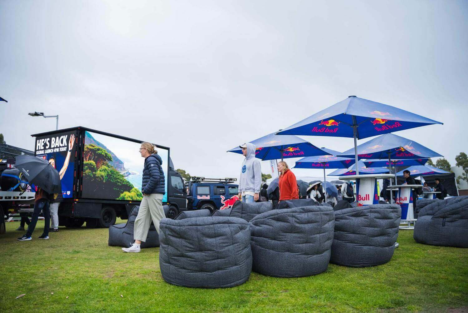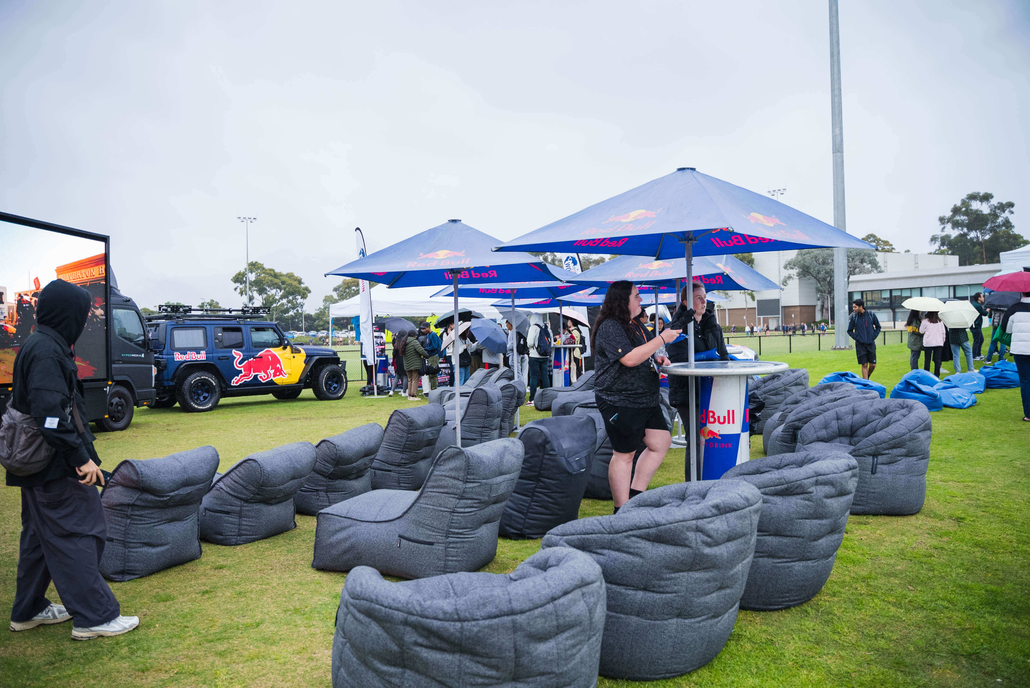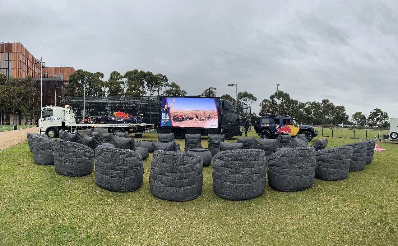 En uforglemmelig opplevelse med Red Bull i den australske villmarken! Fansen nøt hvert øyeblikk av å se profesjonelle racere som Daniel Ricciardo og Daniel Sanders, alt mens de avslappet på VIP utendørs saccosekker fra Ambient Lounge®. En fantastisk måte å tilbringe dagen på for alle racingentusiaster!
