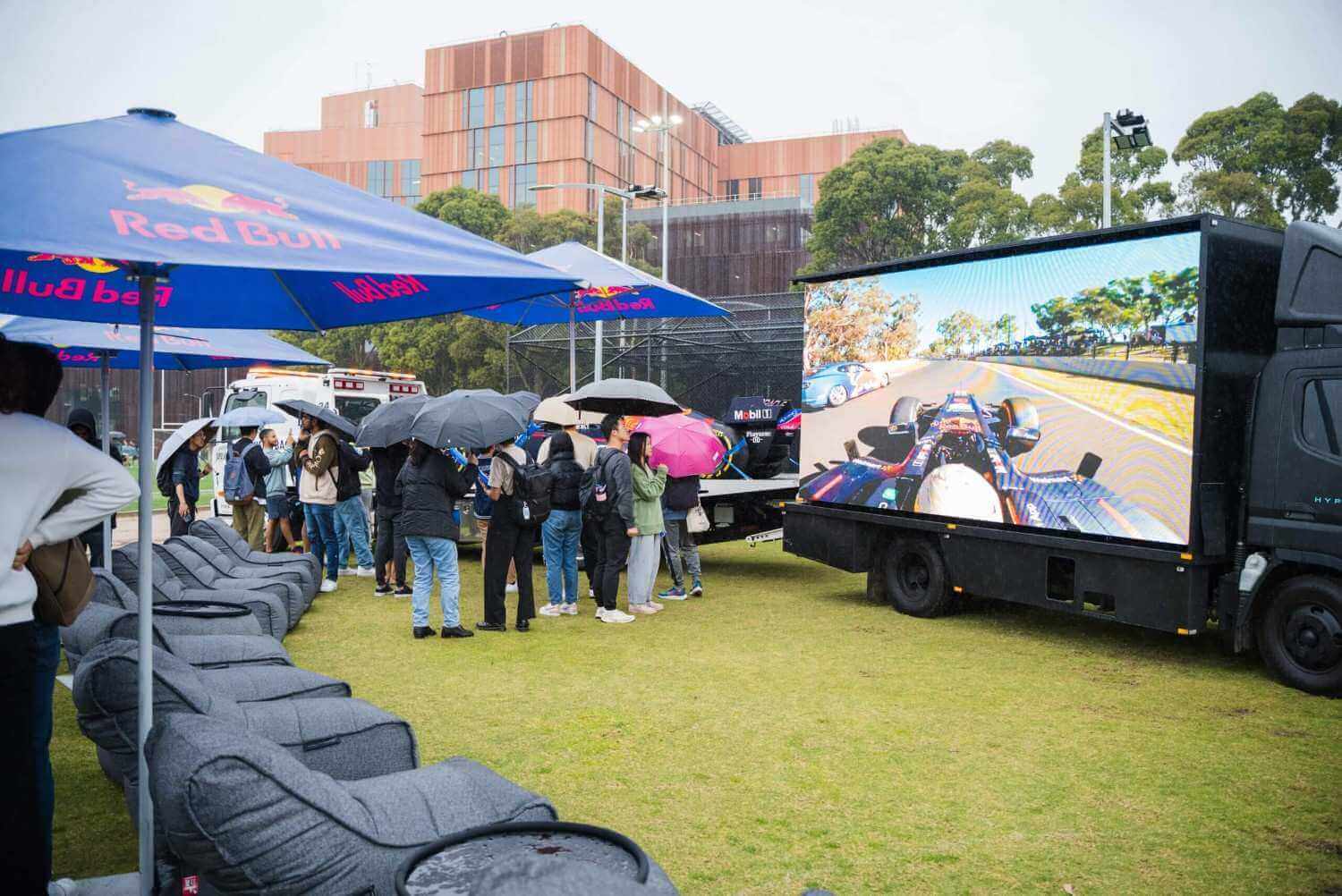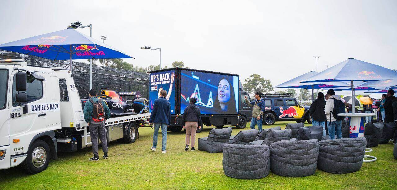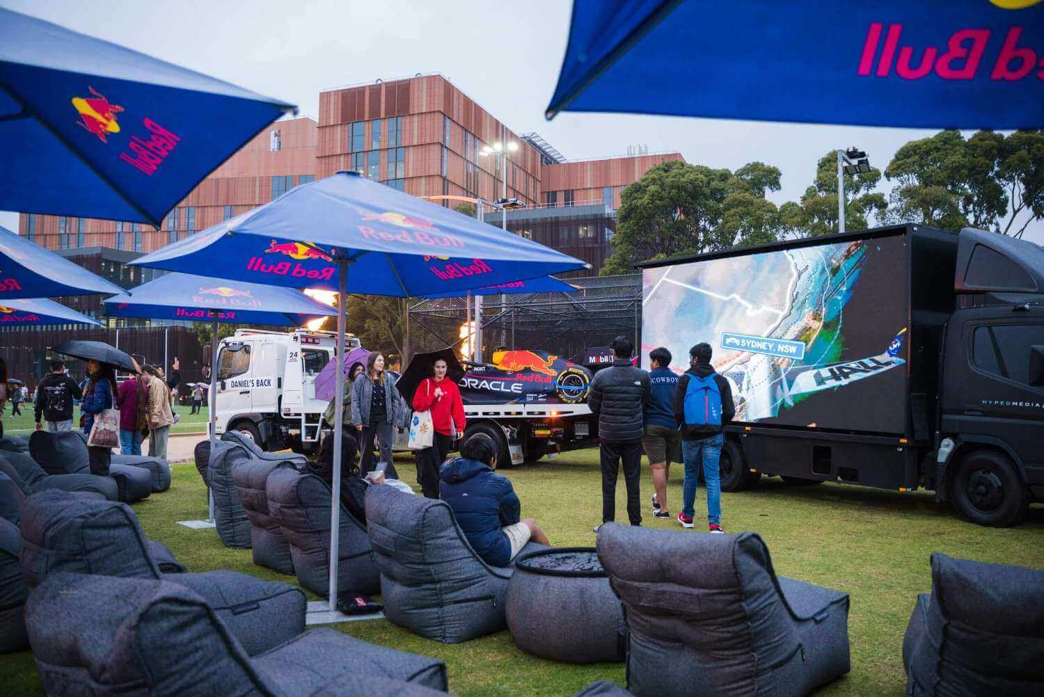 En uforglemmelig opplevelse med Red Bull i den australske villmarken! Fansen nøt hvert øyeblikk av å se profesjonelle racere som Daniel Ricciardo og Daniel Sanders, alt mens de avslappet på VIP utendørs saccosekker fra Ambient Lounge®. En fantastisk måte å tilbringe dagen på for alle racingentusiaster!