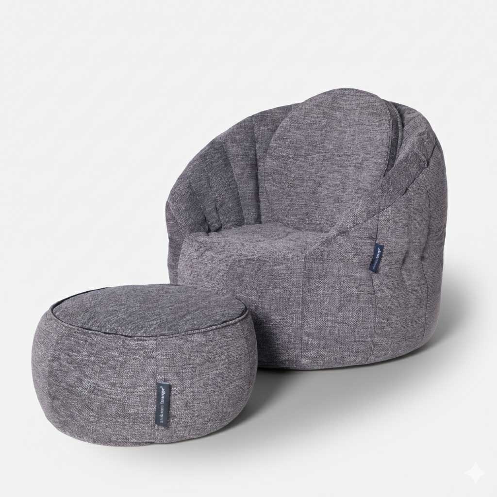 Påfyldningsinstruktioner: Bemærk først, at der er to fyldningsrum for Butterfly Siddepude, et til ryggen og et til soklen (siddegruppe). Det anbefales, at bagrummet fyldes fint og stramt, og siddegruppen fyldes lidt mere løst for bedst mulig komfort og stil. Brug altid Ambient Lounge sikkerhedslåsningsværktøj eller papirclips til at åbne børnesikre sikkerhedslynlåse på sækkestolens betræk.