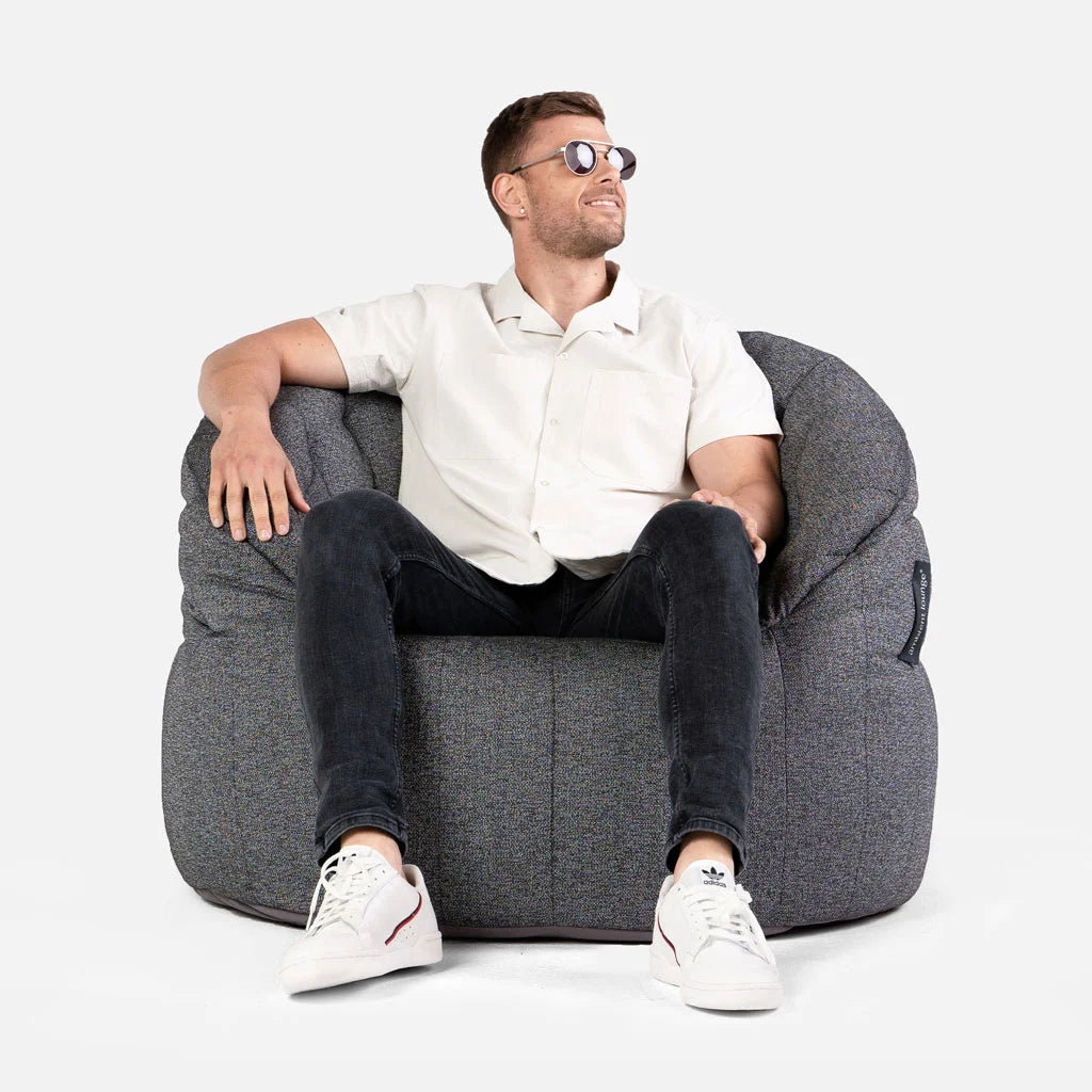 En smuk designer udendørs bean bag-stol med struktur, quiltning og resort-kvalitet stil.