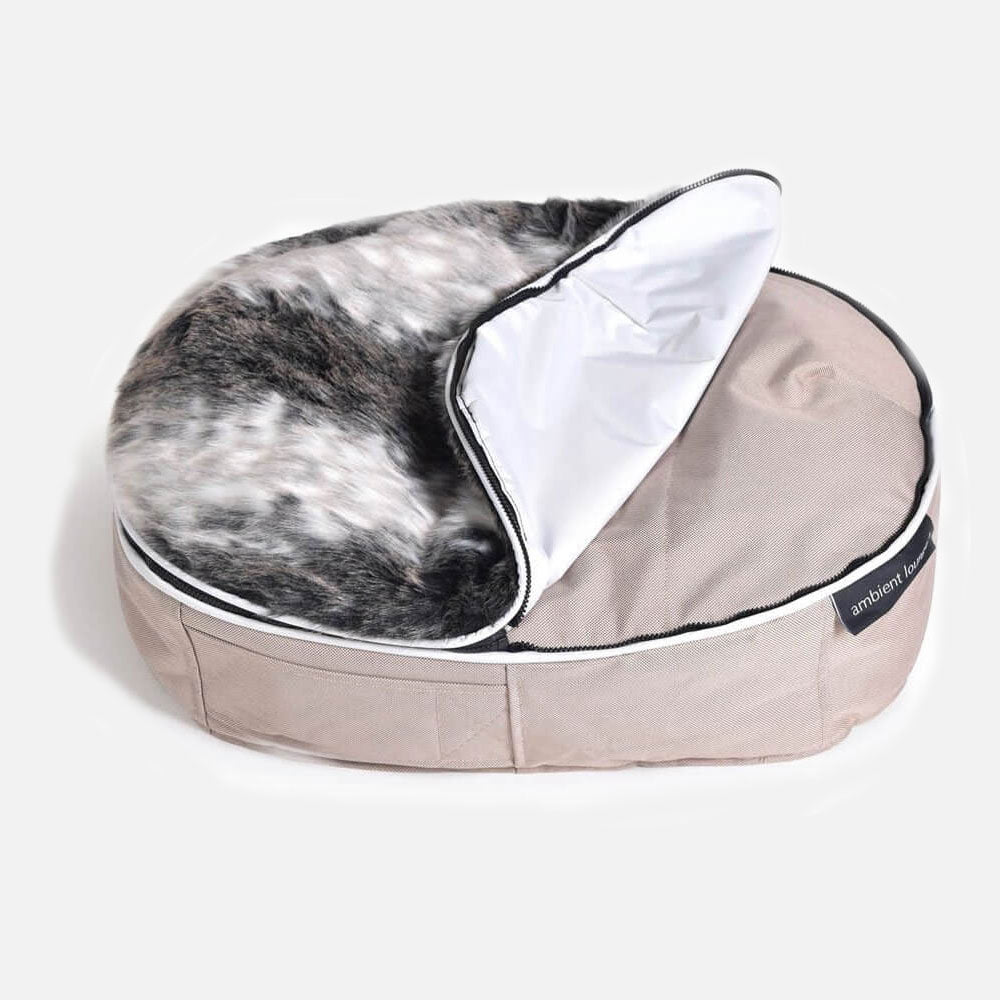 Basen har to farver, der komplementerer betrækket. Vælg mellem den beige farve Sandstorm, og den mørkegrå Supernova. Lad din hund få det bedste a La vilddyret vågne!