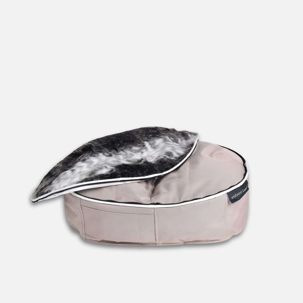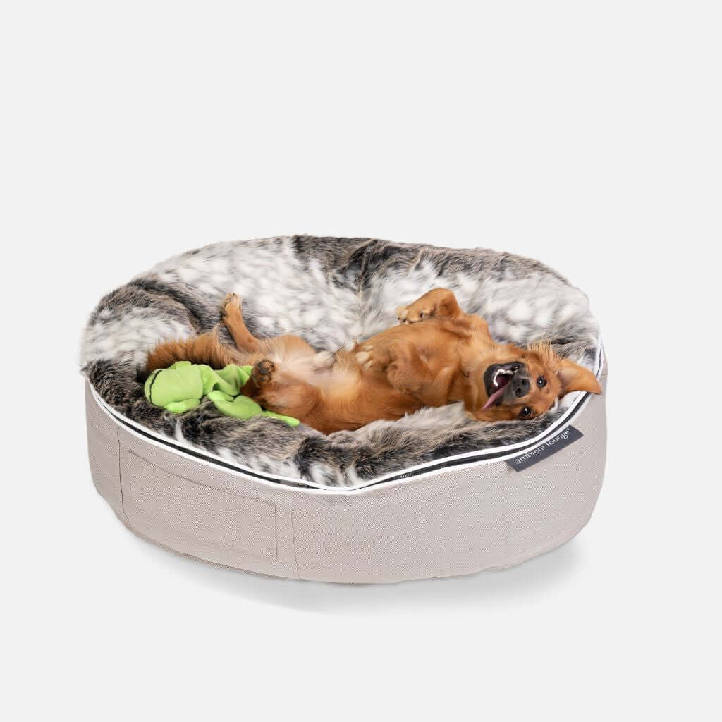 Basen har to farver, der komplementerer betrækket. Vælg mellem den beige farve Sandstorm, og den mørkegrå Supernova. Lad din hund få det bedste a La vilddyret vågne!