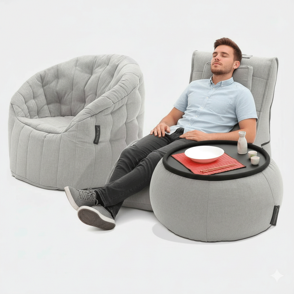 Skab en kontrast til de stive linjer i din lejlighed eller kontor med de afslappende kurver af Loft Package! Dette smukke sæt er perfekt til stuer, familierum, hjemmebiografer, spillerum og barer. Det består af Avatar Lounger, Butterfly Sofa, og et matchende Versa Bord. Fjern bordpladen, så har du en smuk fodstøtte og et praktisk reservesæde!