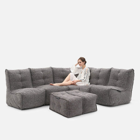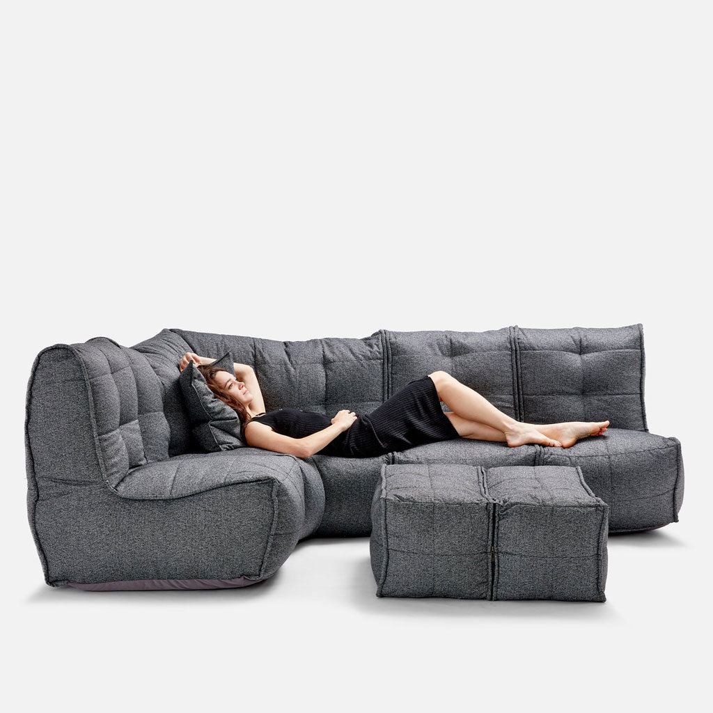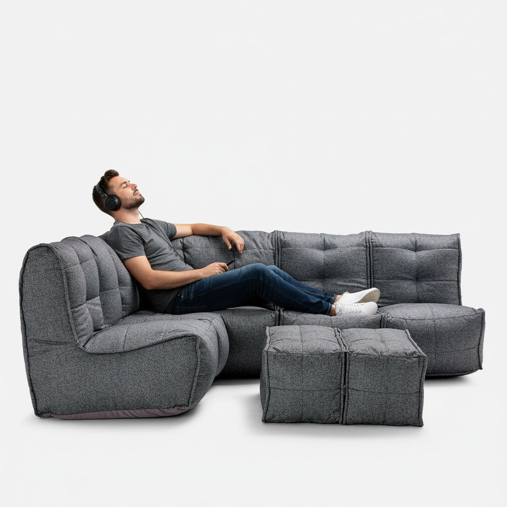 Denne populære Ambient Lounge® modulære konfiguration er ideel til fælles opholdsområder, familierum, receptionsområder på kontorer, episke underholdningsområder til børn, hjemmebiografrum og møbler til lejligheder på Airbnb. Stor nok til at rumme op til 4 personer samtidig og med et perfekt kompakt design til store hjørner eller utraditionelle placeringer – din sofagruppe kan være hele din stue – til en brøkdel af prisen på en traditionel stuesuite.
