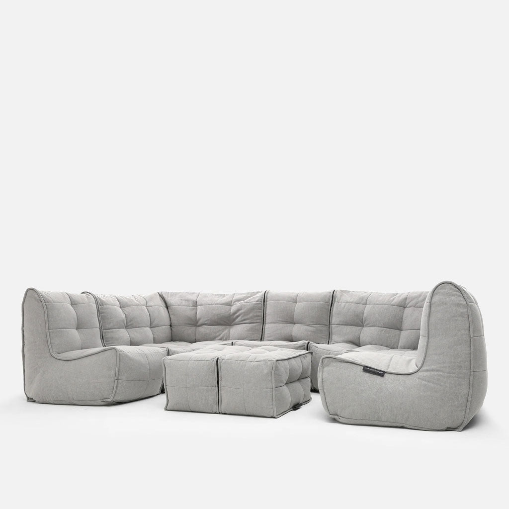 Mod 6 Lounge Max er den største modul hos Ambient Lounge, og navnet lyver ikke – den lader dig slappe af maksimalt! Modulen består af 1 Twin Couch, 2 Modular Corner, 1 Modular Link Single, og ikke mindst 1 Twin Ottoman. 6 siddepladser og 1 fodskammel betyder, at du kan have gæster når du vil!