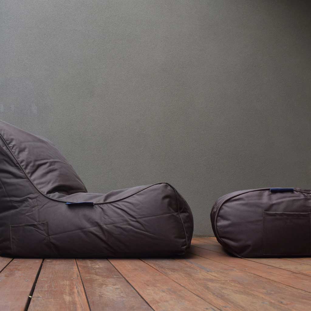 Dette er en sækkestol designet til både indendørs og udendørs brug. Det betyder, at stoffet er designet til at tåle vejr og vind, samt være behageligt at sidde på.