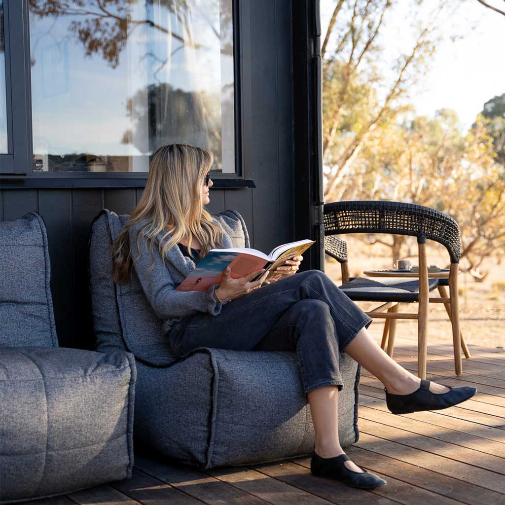 Titanium Weave Twin Couch fra ambient lounge® kan deles i to flotte enkeltstole, hvis du har brug for at adskille dem for ekstra gæster.