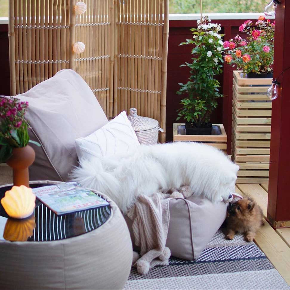 Uanset om du har møblerne ude på balkonen eller inde i stuen, er Sunbrella et fremragende materiale. Sunbrella er både ultrablødt og slidstærkt. Det tåler alt fra storm til børns livlige aktiviteter, samtidig med at de bløde møbler frister alle til en lille lur.
