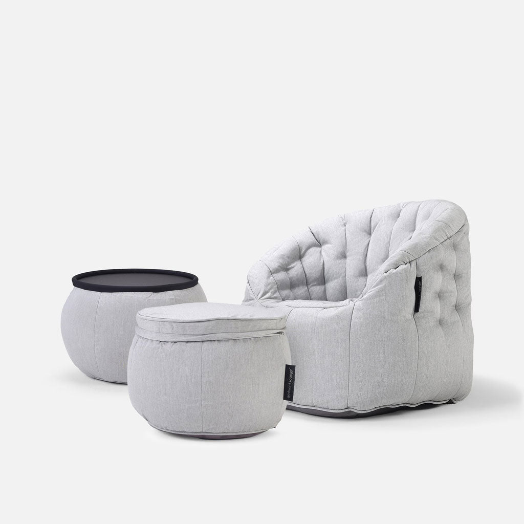 Dette multifunktionelle sækstol-bord er en smuk blanding af luksuriøst stof med en elegant topplade. Ikke mindst har det en fantastisk accent til dit hjem. Elegant, men stadig meget funktionelt. Versa er et sofabord, fodskammel og ottoman ... alt i ét! Kompletter din Ambient Lounge-sofa med Versa som et matchende sofabord.